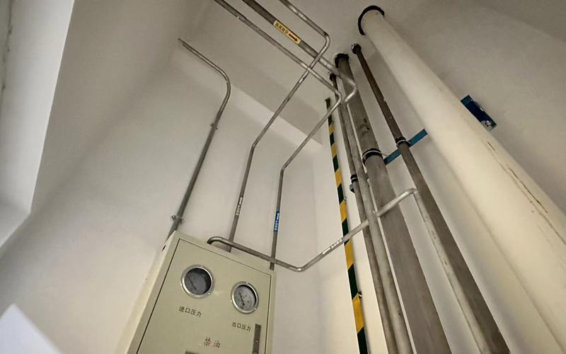 中心供氧和负压吸引系统管道采用304不锈钢脱脂管道,每个楼层管道井安装二级减压箱,护理站和值班室分别安装气体压力观测报警装置。