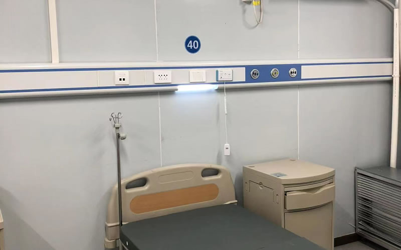 每个床头设备带上分别安装氧气终端、吸引终端、压缩空气终端、呼叫器、开关插座床头灯和网络接口。