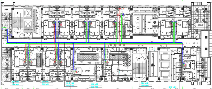 20、病房内设备带电源线2.5mm²的铜芯线应预留其位置,详间各管道布置图。