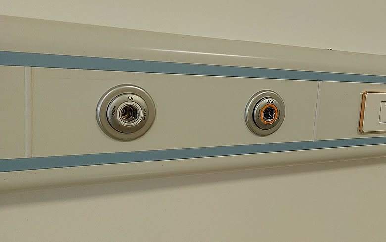 1、手术部手术室的墙壁上设一组气体终端,吊塔上设一组气体终端,抢救室、治疗室吊塔上设一组气体终端,各楼层病房设置设备带。氧气、负压吸引由气体站房接至手术室及各楼层病房。站房位置须有甲方指认确定。