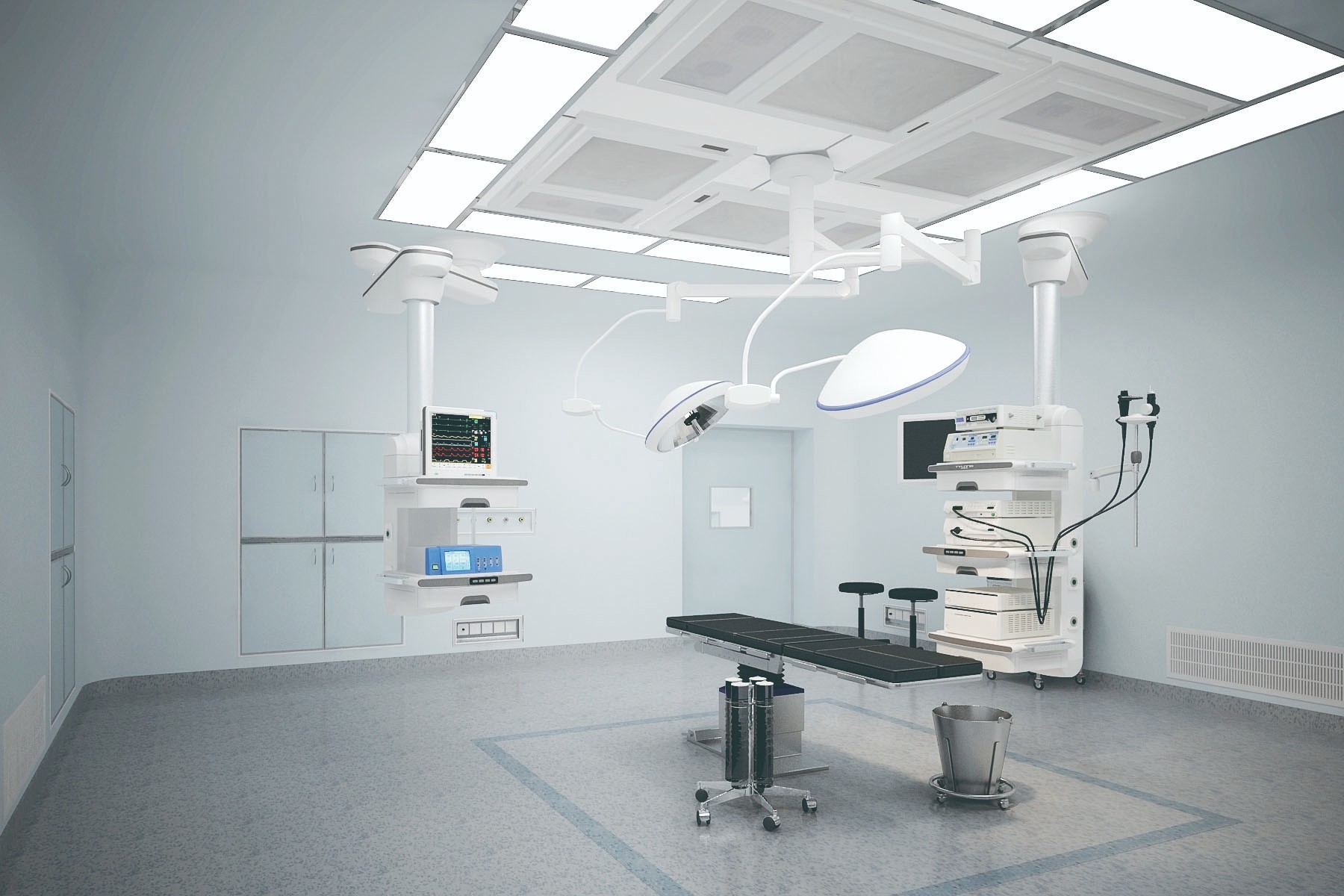 8、手术台需设在手术室中心位置,安装的中心点在手术室长短轴交叉点位置,手术区应在净化系统中心位置。