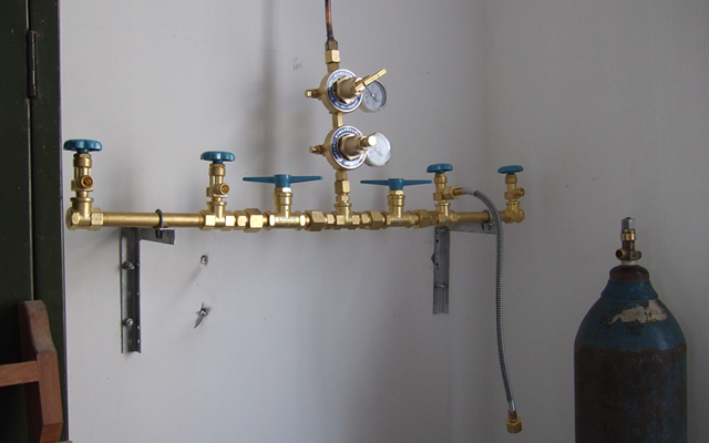 乡镇卫生院中心供氧系统氧气站房一般采用氧气汇流排和中小型医用制氧机的解决方案供应氧气,通过氧气管道输送到各个用氧点。充灌氧气方便的地区可采用多个40L氧气瓶通过氧气汇流排连接减压设备、稳压设备供氧,这种方案的优点是前期投入低,氧气浓度有保证(一般都能达到99%)。