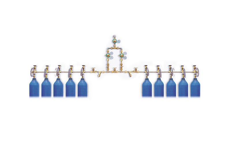 汇流排使用时,可集中连接汇流排导管上的几只或者数十只气瓶,气体在此进行过滤、减压、稳压后输送到使用终端。