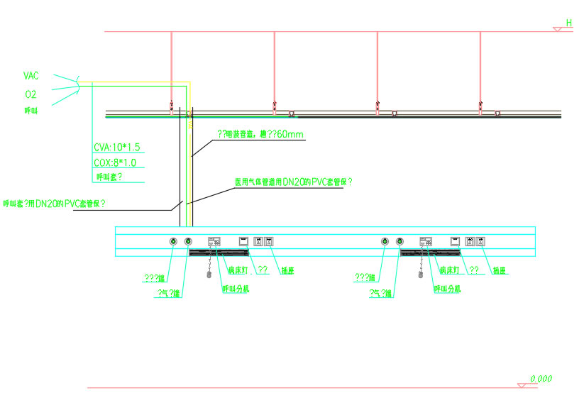9. 医气管道主干管均采用输送流体用不锈钢管,进入病房内的支管均采用铜管。