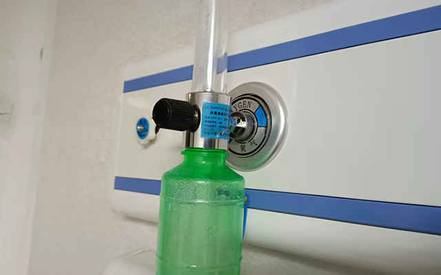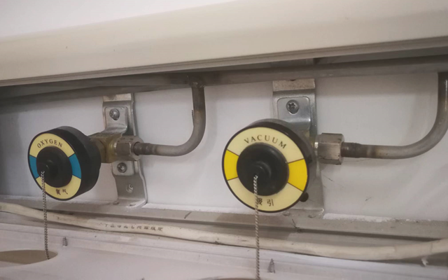中心供氧系统管道终端有自闭装置,当吸氧设置插入时,阀门打开,氧气进行供应,当吸氧装置取出时,阀门自动关闭。氧气终端如果存在漏气现象,存在安全隐患。