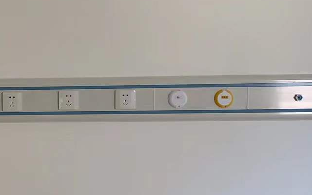 第三步:在墙上固定医用设备带、安装氧气、负压吸引等各种气体终端、呼叫器分机、床头灯和开关插座等病房床头设备。