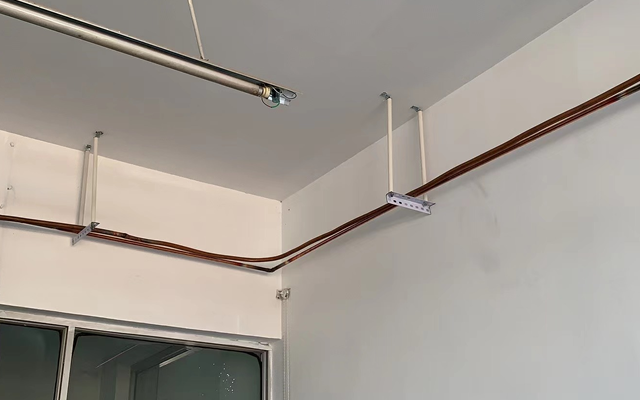 第二步:病房氧气管道的铺设,这一步可分为两种方式:一种为明管,是指病房氧气管道进入病房后吊顶与设备带之间的部分管道用铝合金扣槽装饰。另一种是吊顶与设备带之间的部分墙上开槽,预埋暗管。