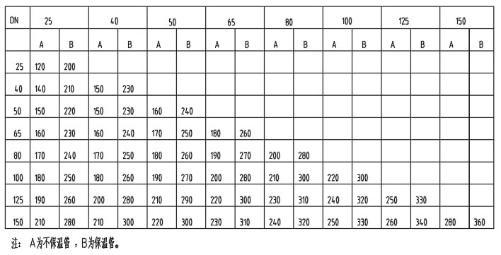 27.3    管道沿墙、柱铺设,管道轴线离墙或柱的距离按管径一般规定为:
